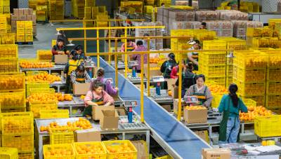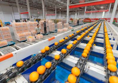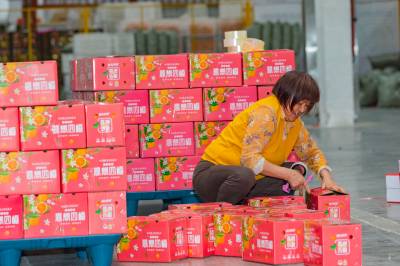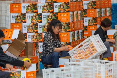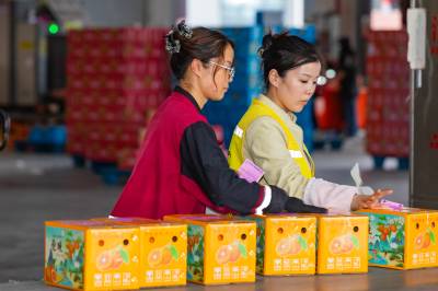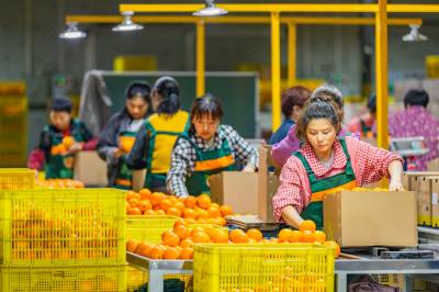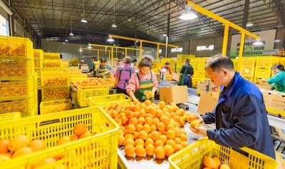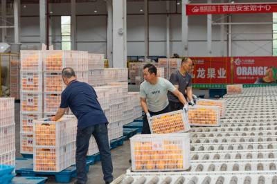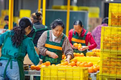 2026年4月28日,湖北省秭归县脐橙物流园内一片繁忙景象,工人们正抓紧分拣、包装、装运轮晚脐橙。当前正值秭归轮晚脐橙销售旺季,当地电商企业火力全开,将轮晚脐橙出口销售到东南亚等国家和地区,促进当地农民增收致富,助力乡村全面振兴。