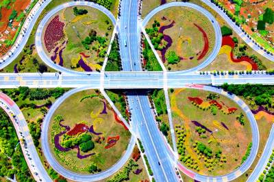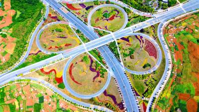 互通互联 撬动活力 2026年4月28日,连通银武和呼北高速的湖北省十堰市郧阳天马大道与十堰大道、农村公路互通互联的智慧互通,色彩缤纷,格外迷人,车来车往,宛如画中行。 近年来,郧阳区不断加大交通基础设施建设,高速公路、国省干道纵横交错,四通八达的路网互联互通,方便了群众,活络了产业,火了旅游,四通八达的路网为加快鄂西北地区经济发展注入活力,促进了南水北调源头地区的发展。