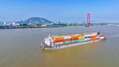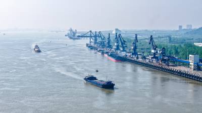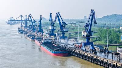 2026年4月30日,湖北省黄石市长江黄石新港水域,船舶往来穿梭,港口装卸作业,一派繁忙。近年来,湖北省黄石市新港深耕多式联运发展,创新“一单制”“一票制”运营模式,打通江海联运、水铁联运、陆空联运等通道,完善疏港体系,构建便捷物流圈。推动交通物流降本增效,提升现代流通港口智能转运水平和联运服务质效。