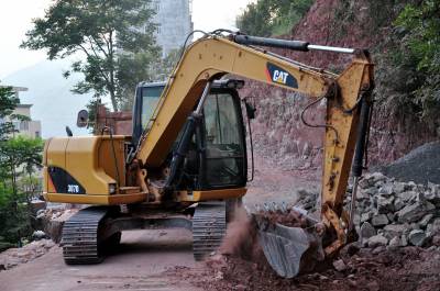 18日,高温难熬,却在巴东县官渡口镇太矶头学苑路上,一台挖机仍在不停的修路。 据了解,从该镇集镇到太矶头初中的学苑路车辆只能单行。今秋,由于黄土坡小区避险搬迁到神农小区,加之官渡口初中全部合并到太矶头初中,学生数猛增。官渡口政府投资80万元将学苑路加宽,以解决2200多名师生出行困难及安全隐患。经暑期一个多月的奋战,秋季开学可投入使用。(本报视界网 穆世祝摄)