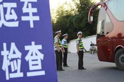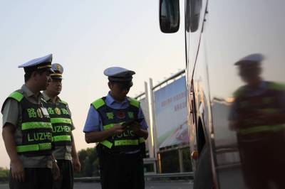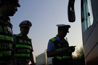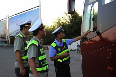 19日,路警联合执法小组正在湖北京港澳鄂南收费广场出口对一辆长途客车进行例行检查。一段事件来,全国发生数起大型交通事故,超员、超速以及疲劳驾驶是大部分事故的罪魁祸首。路政六大队联合高速巡警加大对客车检查力度,加大对客车驾驶员的教育,以达到减少事故发生,尽力保证人民生命财产安全的目的。(祝巍)