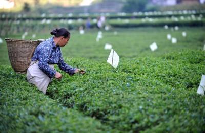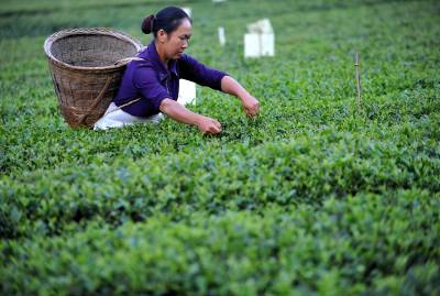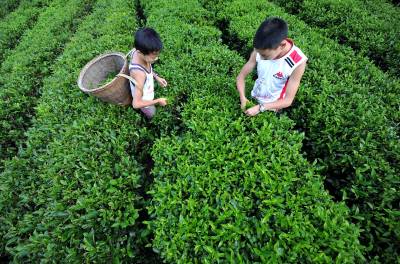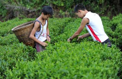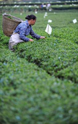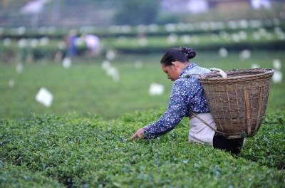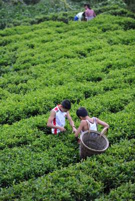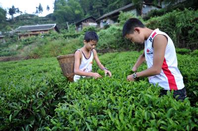 8月19日一大早,宣恩县椒园镇庆阳村茶农在茶园采收秋茶。 “秋老虎”连续发威,对宣恩县茶农秋茶采收造成影响,上午10时至下午4时之间几乎无法进园采茶。 时下正值秋茶采收高峰季节,拥有10万亩茶园的宣恩县各地茶农利用早、晚天气凉爽时进园采茶,茶农笑称这是“从‘秋老虎’嘴里拔茶”。(本报视界网 宋文 摄)