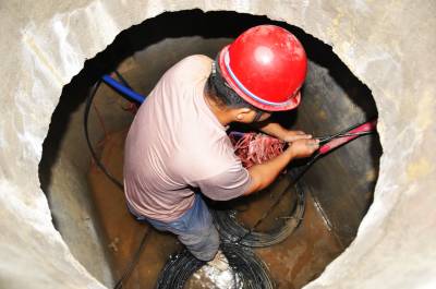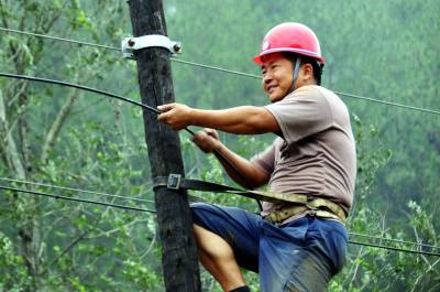8月19日,郧县广电局网络公司职工王平正在开发区电线杆上进行广电线路复建安装。郧县因南水北调中线工程将有211.22杆公里广电线路和3座广电机站需要重新复建,目前郧县广电局已组织5个班在进行广电线路设施的复建工程建设。 图为王平正在开发区电线杆上进行广电线路复建安装时的情景。 周家山 杨文华 郧县城管大队 电话13872840078 邮编442500
