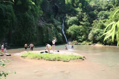 湖北恩施已出现连续高温半月,天气炎热 ,孩儿快乐。瞧这一群小孩在恩施州城附近的龙洞美景区游泳上岸地高兴劲儿。