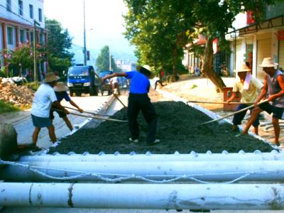 为了把罗九百里生态画廊早日建成,罗田县白庙河乡抓紧对两公里长的老街进行整体改造,连日来,街道建设者们冒着室外40多度的高温硬化街道路面,用辛勤的汗水铺就小康路。 视界网 刘放鸣摄