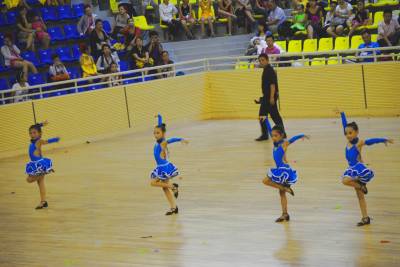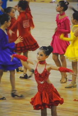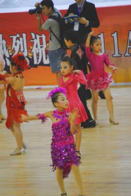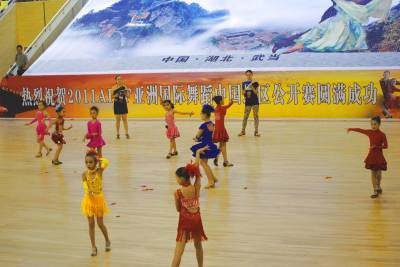 8月20日上午,由AIDF亚洲国际舞蹈联合会、武当山特区管委会主办,湖北省大明体育艺术培训学校协办的“灵秀武当”2011年中国旅游城市国际标准舞大赛在武当武术国际交流中心鸣锣开赛。来自全国各地国标舞(体育舞蹈)协会、学校、俱乐部及爱好者近2000舞者参加比赛。此次比赛将进一步推动全民健身活动蓬勃发展,丰富区民文化体育生活,提高武当山的知名度和美誉度,促进武当山旅游经济更好更快地发展。图为少儿组个人国标舞角逐。 (本报视界网:张根富 摄 )