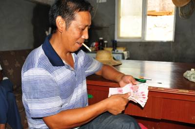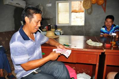 8月20日,在郧县杨溪铺镇钟山村移民安置地上的泥瓦匠李士华领到了他们4人5天的5300元工钱,李士华今年45岁是谭家湾镇五道岭村一组村民,他领到工资后高兴的说,只有在移民工地上打工兑现工资最及时。目前郧县79个移民点共有4000多民工奋战在7229户移民房的建设之中。 图为泥瓦匠李士华领到了他们4人5天的5300元工钱时的情景。 周家山 杨文华摄 郧县城管大队 电话13872840078 邮编442500