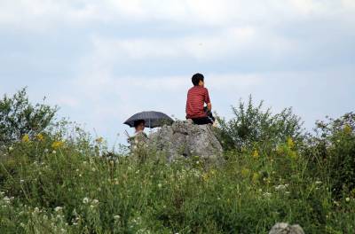 8月20日,一对夫妻在中国南方最大的山原草场利川齐岳山高高的山顶山眺望远方,祁盼幸福长久。