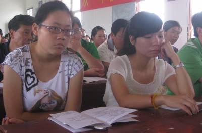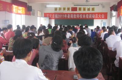 8月21日,省教育厅选派的两名2011届资教生在安陆市王义贞镇暑期教师校本培训现场与当地教师一起参加培训。每年秋季开学前,安陆市教育局便要求全市以乡镇为单位对所有教师进行为期一周的师德师风、业务素质等全员培训,以全面提高该市教师的专业素养和业务能力。图为培训现场。