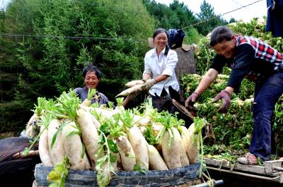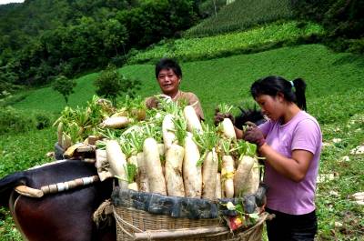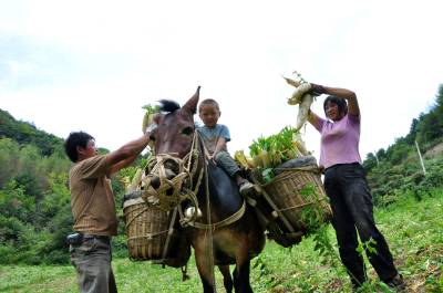 8月21日,在恩施市红土乡石灰窑村罗家坪组,一支骡马“钟点工”正在当地蔬菜基地“搬运”萝卜。 近几年来,该乡注重特色产业的发展,涌现出了一大批种植大户和种植基地。许多种植基地农忙时,急需“钟点工”给种植的蔬菜做育苗、施肥、除草等“料理”工作。顺应这种需求,一批有经济头脑、思路开阔的人不再盲目跟从外出打工大潮,而是安心在家做骡马“钟点工”,平均每天可赚到100-150元钱,这样不仅照顾了家里,也在家门口赚到了钱。(本报视界网彭绍峰摄)