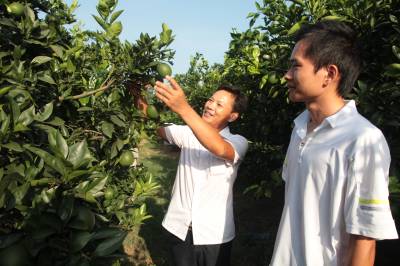 社会实践在田间 8月19日,枝江市董市镇裴圣村村民钱光成(左)正在指导儿子钱亮学习脐橙种植技术。钱亮是山东科技大学三年级学生,他充分利用暑假开展社会实践活动,在家里学习农业科技知识,以掌握更多的本领。本报视界网刘卫东摄