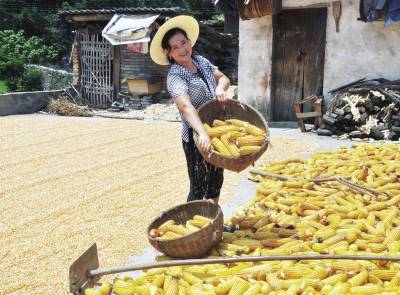 松滋市刘家场镇面对今年大旱之年,广大干群齐心协力,勇战旱魔,取得了抗旱救灾的胜利,全镇大面积农作物喜获丰收,农民群众喜气洋洋,田野乡村到处呈现一派丰收景象。 图为该镇庆贺寺村5组农民章悦在收获自家玉米。 张元银 摄