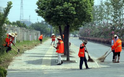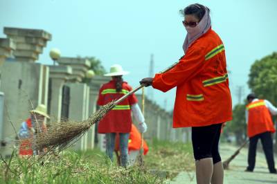 坚守环卫人营造市容美 8月21日正午,数名环卫工人顶着烈日,在孝感市孝汉大道上清扫浮土落叶,铲除路边杂草。孝感城区7个环卫站920名一线环卫工人,每天分班对城区主次干道、背街小巷、城乡结合部及城区各类重点场所清扫保洁,建筑垃圾、生活垃圾日产日清,给市民干净整洁的生活环境。 签约摄影师 晏美华 摄