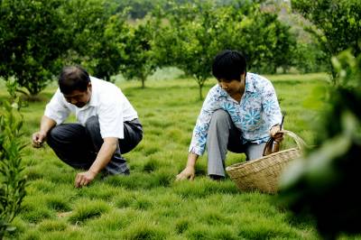 8月21日,宜昌市夷陵区鸦鹊岭镇云台村模范计生户吴邦艳正在柑橘园套种草坪的田里除草。今年吴邦艳家的10多亩柑橘园通过套种草坪,柑橘挂满枝头,地上草坪绿油油一片,呈现出丰收两旺的景象,可年获收入4万多元。周围村民在她的带动下,纷纷效仿,目前,该村已有200余亩柑橘园套了草坪,可年创收入80万元。本报视界网 周建平 易正权 摄
