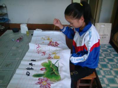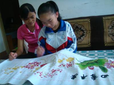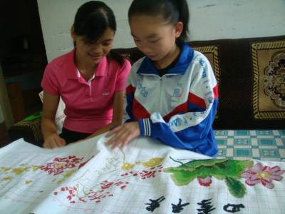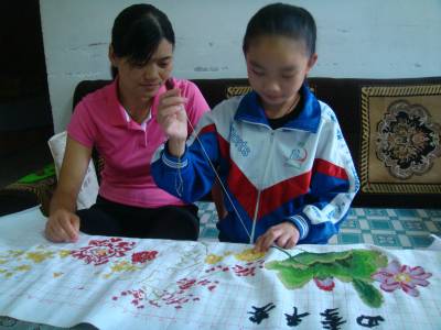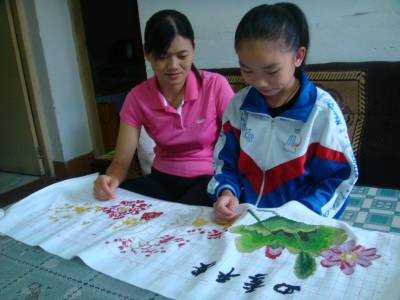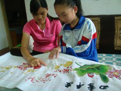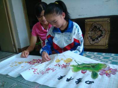 本网讯 8月22日,湖北省郧县青山镇青树沟村的学生张子夜在跟妈妈学刺绣。 眼下正值暑假,湖北省郧县农村的很多学生在完成暑假作业的同时,与平日相比多了一项任务,或跟着家人学样技术,或帮助家人做些力所能及的家务和农活,在劳动中体会父母的艰辛,丰富自己的暑假生活。(视界网 黄循发摄)