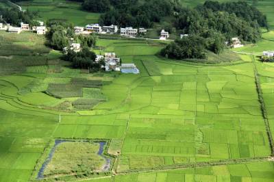 在恩施州曾有“金建始”“银利川”之说。“金建始”说的是建始县盛产玉米,银利川说的是利川市盛产大米,“金建始”尚未见过,“银利川”我倒是领略过了。这是8月21日摄于利川市南坪境内的大片稻田。(万杰 摄)