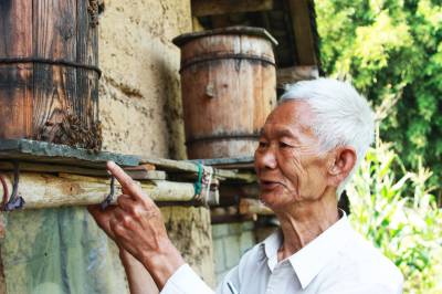 8月21日,在秭归县杨林桥镇三渡河村一个名叫“胡家垭”的民寨,吴老汉喜迎一批不速之客,蜂还巢的一桶野生蜜蜂让他喜不自禁。“蜜蜂安居之处,必是人杰地灵之所”,千百年来,这些寄居农家屋檐下的可爱生灵是人们心中倍受珍视的吉祥之物。自从退耕还林后,当地水变清,山更绿,生态环境得到有效改善和恢复,吴老汉闲置近50年的8个蜂桶相继迎来自己久违的房客,不请自来的千万只野生蜜蜂安居其间生儿育女,酿造甜蜜的事业,给主人带来惬意和幸福。