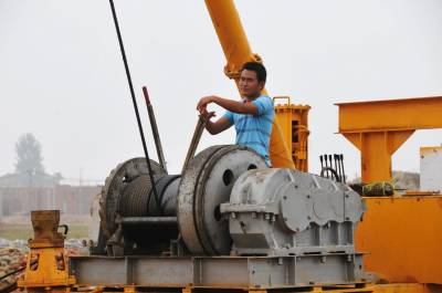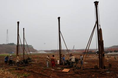 8月23日,郧县柳陂镇复建新集镇在汉江南岸新址加快建设。郧县因南水北调中线工程而将淹没复建柳陂镇,辽瓦,茶店镇,城关镇四个集镇,目前已完成三通一平施工,房屋正在加快建设之中。 图为25吨级打桩机正在柳陂镇复建新集镇上打桩及建房时的情景。 周家山 杨文华摄 郧县城管大队 电话13872840078 邮编442500