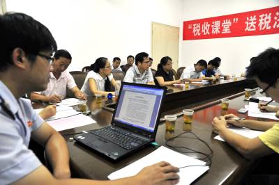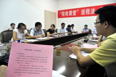 近日,为进一步改善投资环境,武汉市江夏区国税局专门开设流动“税法课堂”,定期深入工业园区和重点税源企业,为企业老总和财务人员解读税收政策,帮助企业解决涉税难题。“税法课堂”就增值税及企业所得税、代征工会经费等问题进行讲解,并发放涉税调查问卷百余份。流动“税法课堂”开设以来,先后走进乡镇办事处,向他们讲解最新的税收法律法规和优惠政策,使招商人员及时了解国税税收政策变化,得到了政府与纳税人的一致好评。图为 第一期“税法课堂”在郑店工业园区开讲。(武汉市江夏区国税局 邬继军 邮编430200 电话027-81813683)