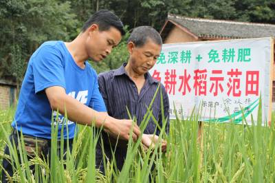 湖北省竹溪县引导农民科学种田,采取高产高效栽培技术,搞好农作物病虫害防治,使全县8万多亩水稻长势良好,丰收在望。图为8月23日,农技人员在县河镇明家湾村明昌凤的水稻田里,查看水稻使用免深耕的水稻长势情况。 地址:湖北省竹溪县电视台 沈耀武 沈传华摄 邮编:442300 电话:13886801618