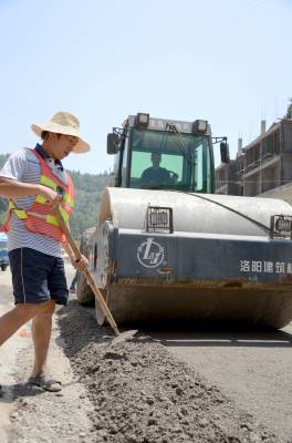 8月24日,宣恩县珠山镇桐子坳村,施工人员正在忙碌着修复路面,铺上混泥土,压平路面。据悉,此次维修工程将投入1900多万元维修17.6公里。主要是对破坏严重的路面进行维修,保证车辆的顺利通行。