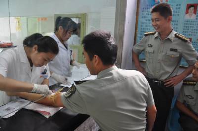 8月25日,宣恩县人民医院的医生正在为县人武部官兵进行体格检查。连日来,由县民政局牵头,协调县人民医院开展“心系官兵健康,打造官兵强健体魄”活动。免费为县人武部20位官兵、职工进行了采血、尿检、B超、心电图、透视等全方位检查,为每个官兵打造了一份放心健康档案。