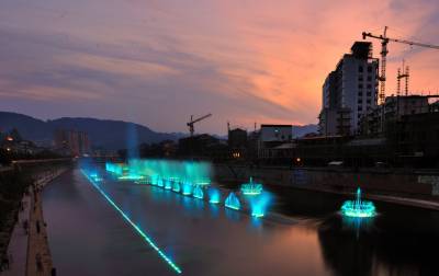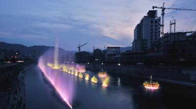 中国最大的内陆河音乐跑泉湖北宣恩县“贡水之滨”音乐跑泉,总投资1300万元,全长350米、宽40米、主喷高70米,设计有水幕电影放映等功能。它以土(家)苗民族音乐为主旋律,以民族特色为跑泉造型的主要元素,是“鄂西生态文化旅游圈”建设的组成部分。宣恩是贡茶之乡,该县正着力将县城打造成小而精、美而特、活而优的宜居、安居、乐居的生态文化旅游城。