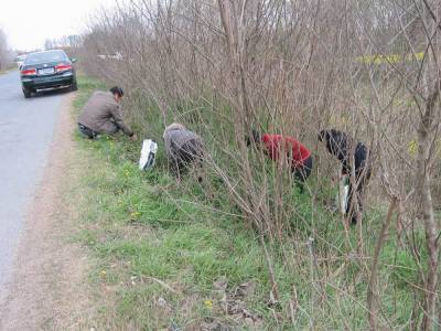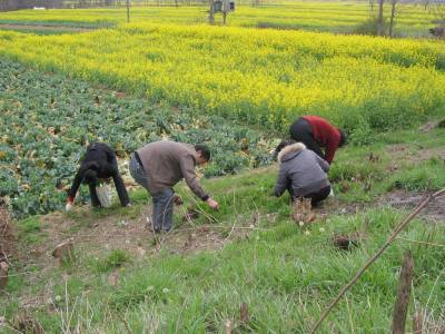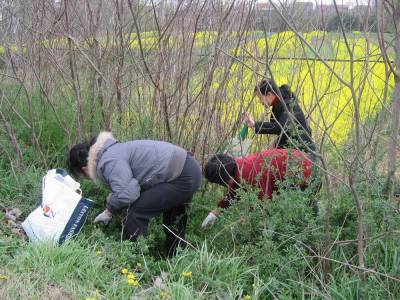 > 市民踏青到乡下采野菜