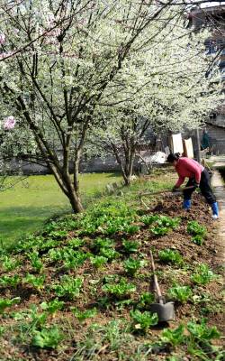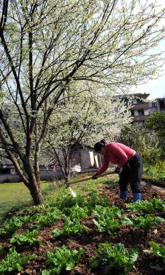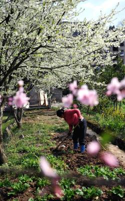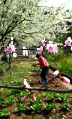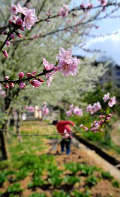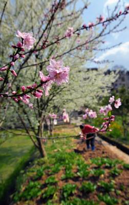 > 农民劳作花丛中