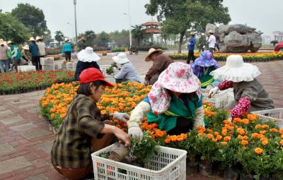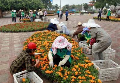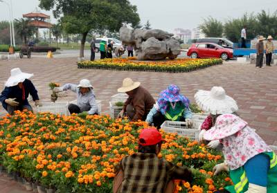 9月23日,园艺工人在鄂州市凤凰游园摆放鲜花。国庆临近,该市绿化管理处在城区交通岛、广场、游园等地摆放17万盆时令鲜花,将整座城市装扮得更加美丽,喜迎节日的到来。 视界网/方仲华摄