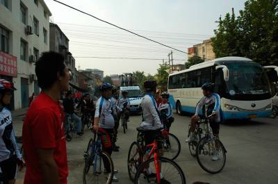 9月22、23日,一支由近百人组成的自行车爱好者骑行团来到我市,宣传环保,倡导绿色出行。骑行团在我市期间参观了南水北调中线工程丹江口大坝,现场采访了南水北调水源保护和生态建设情况,之后到羊山村开展“中国水都记者林”启动和植树活动,活动结束后骑行团离开我市前往老河口市。图为我市自行车爱好者在大巴车前合影留念。