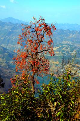 在位于长江南岸的巴东大面山上挂满了红透的柿子,惹人垂涎,远见其树冠开张,与红叶比美,鲜丽悦目。红透的柿子是待客的好果实,随采随吃,吃不了的可以做成柿饼储藏,常年享用,不仅增加了当地农民的收入,每到挂果红透还引还诱不少摄影家前来聚焦。