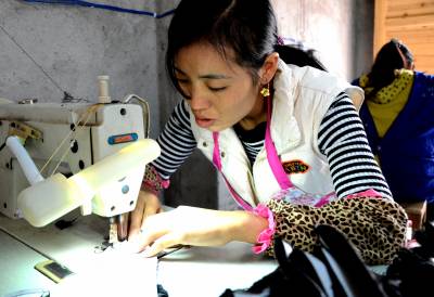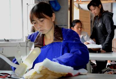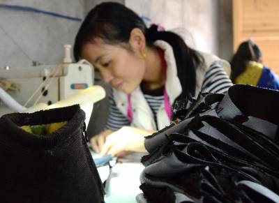 9月22日,在宣恩县沙道沟镇响龙大道一家棉鞋厂里,工人们正在细致的加工棉鞋。 据介绍,该厂由外出打工八年的燕子云于今年年初回乡创办,共投资25万元左右,并聘请了当地工人40名,让老百姓实现家门口就业,带动了当地的经济发展。 本报视界网 戴俊 摄 宣恩县新闻中心 戴俊 13636280558