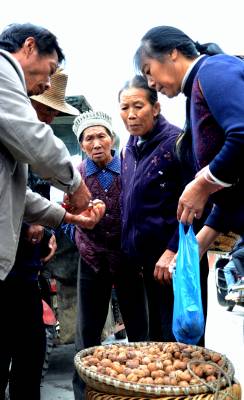 9月22日,在宣恩县沙道沟集镇上,一位农民正在销售核桃。 眼下,正是核桃收获的季节,走在集镇上只见一挑一挑的核桃走进市场。 近年来,该镇在大力发展支柱产业的同时,指导老百姓用上边边角角的一些小田土,种上了核桃。如今,小小的核桃也能为农民带来增收。 本报视界网 戴俊 摄 宣恩县新闻中心 戴俊 13636280558