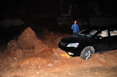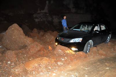 半夜行车突遇山体滑坡 新车损坏捡回一条命