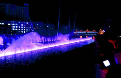 9月23日,全国最大的内陆河音乐跑泉开始调试水幕电影放映功能。该音乐跑泉位于宣恩县“贡水之滨”景区,全长350米、宽40米、主喷高70米。它以土(家)苗民族音乐为主旋律,以民族特色为跑泉造型的主要元素,将生态景观与丰富的自然人文景观有机结合。国庆节期间将正式投入运行,届时将成为市民休闲观光的场所。