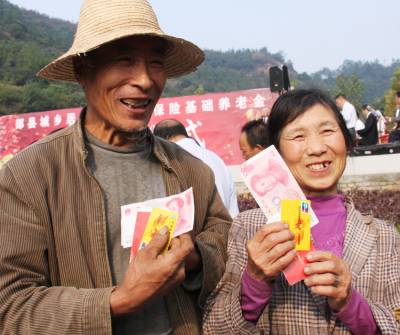 “种地不缴税,看病有农合。如今,我们也象城市里有工作的人一样,每月都能领取工资了。”9月24日,郧县青曲镇洪门铺村的农民康邦左老两口,领到刚发放的养老金后高兴地说道。当日,洪门铺村60周岁以上的192名老人都领取了养老金。据郧县养老保险局介绍,郧县约有6万多老人将领取养老金。 郧县新闻宣传中心姚年明13508678222