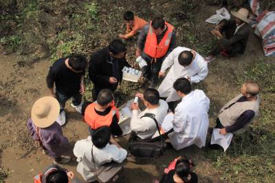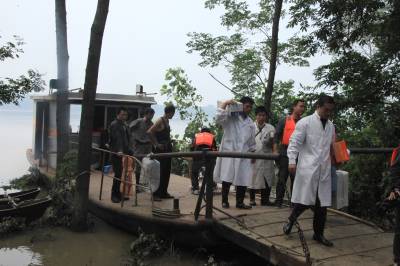 医疗队到灾区巡诊 23日,天门市疾控中心组织彭市卫生院医护人员在彭市镇双河垸灾区巡诊。当日,当地医护人员携带感冒、消炎、肠道传染病、消毒等药品深入灾区巡诊,发放卫生宣传资料,确保大灾过后无大疫,让灾区人民正常生活。(本报视界网刘银斌摄)