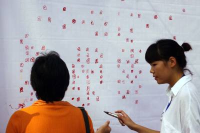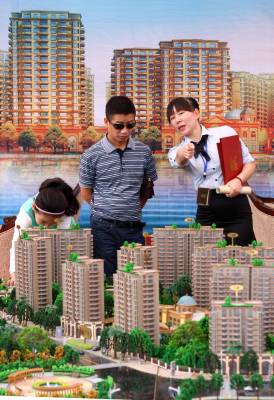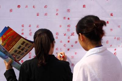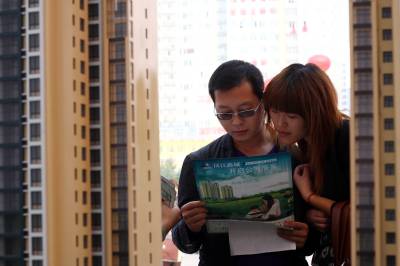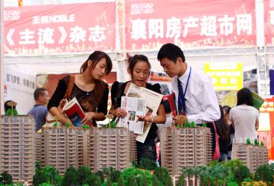 2011年9月24日,湖北省襄阳市,市民在秋季房展会上选购住房。