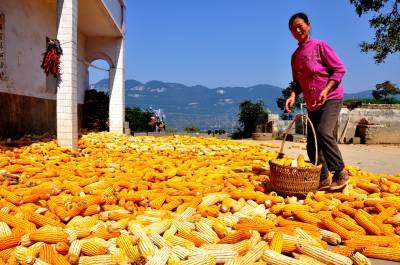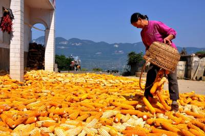 9月24日,恩施市红土乡平锦村么房组村民正在晒苞谷。 时下正是丰收季节,在恩施市的山寨里,当地农民抓住晴好天气,各家各户纷纷开始晾晒刚刚收获的苞谷等农作物,确保颗粒归仓。 据悉,该市今年苞谷遭遇大旱之年,农民秋粮仍可丰收。(本报视界网彭绍峰摄)