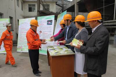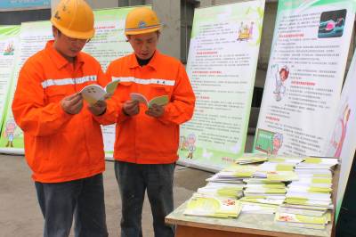 9月25日,来凤金凤建材有限责任公司职工正认真查看《尘肺病防治知识》职工普及读本。