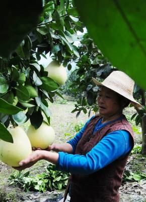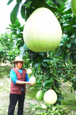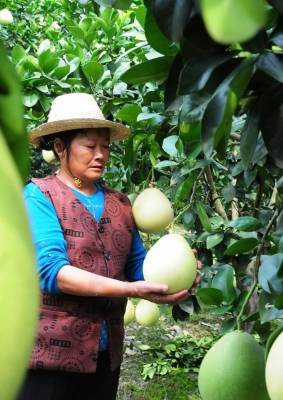 宣恩4万亩贡水白柚丰收在望 9月25日,宣恩县高罗乡埃山村农民印丙莲正在柚园里查看贡水白柚长势情况。宣恩县自2000年以来,在适宜种植地区发展贡水白柚8.5万亩,如今已有4万余亩进入丰产期。日前,该县高罗、李家河等地的贡水白柚长势良好,丰收在望,预计今年可收获白柚45000吨。 本报视界网 李以国摄 13997771030