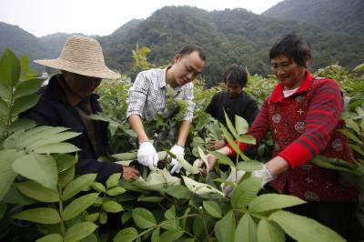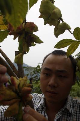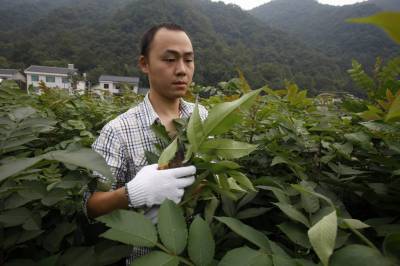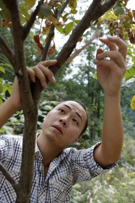 2011年9月25日,五峰林海园艺老总陈文章与儿子颜伟采摘林木标本。颜伟是华农大园林系毕业生,2010年放弃在武汉工作的机会,返回湖北省五峰土家族自治县渔洋关镇与父亲陈文章共同创业。他看好家乡五峰丰富的林木资源,父亲陈文章自1991年开始,创办林海园艺场,20年来,为湘鄂四川渝提供各种优质苗木2.2亿多株,可供绿化荒山200多万亩,颜伟回家乡后,承担的五峰自来水厂、污水处理厂以及集镇街道景观绿化设计施工,受到社会的良好评价。目前,为五峰五蓓子产业基地建设,培育出了80多万株种苗长势喜人,并可供建造5000多亩基地。文振效