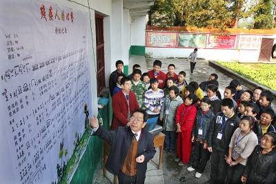 残疾人的心声(随州)近日,一群残疾青少年在随县博爱 (残疾人)就业培训中心园区放声歌唱该校自创歌曲《残疾人的心声》。 据悉,博爱培训中心一年来,深入山区乡镇招收130多名农村残疾青少年,以不收取任何费用的方式把残疾青少年招进来进行培训,教他们做人,教他们学一技之长,教他们自立谋生。在当地深受赞誉,一些企业家及爱心人士把深切的关心和浓浓的爱心汇聚于这里。 随州日报记者、视界网杨文明摄