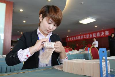 随州金融系统职工技能决赛开幕 9月23日,“建行杯”随州金融系统职工职业技能决赛在该市隆重举行。来自全市8家金融单位代表队30余名参赛选手,参加了点钞、计算机数据录入决赛。活动旨进一步在全市金融系统中掀起钻业务、学技术、练技能的高潮,激励广大金融员工学习新知识,掌握新方法、新技巧,更好爱岗敬业、创新奉献、为民服务。 随州日报记者、视界网杨文明摄
