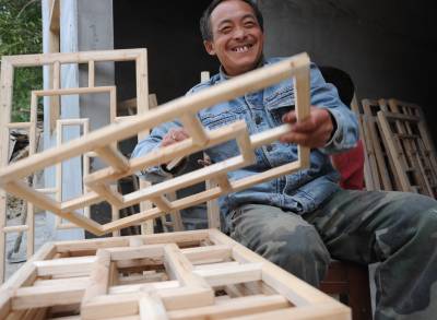今年50岁的黄吉学,湖北恩施土家苗族自治州家住建始县景阳镇凤凰观村9组,上世纪七十年代末拜当地一老木匠为师学得一手绝活,谢师后独自走村串户干起木匠手艺活来。然而好景不长,随着当地水泥平房兴建,黄吉学的木匠手艺越来越不吃香,上世纪九十年代初,迫于生计改行当起泥瓦匠,这一干就是十好几年。近年来,随着新农村建设和旅游业兴起,生活在土苗山寨百姓日益追求放璞归真,土家吊脚楼、特色民居的兴建成为当地引领当地建房主流,木匠紧俏。改行的黄吉学重拾老本行,还带起徒弟来。如今他是做不完的活,建不完的房,收入比起干泥瓦匠要翻番。据悉,在该县如今已有500多名改行的老木匠重拾老本行,仅今年到目前,他们已在该县沿野三河景区百里生态走廊就已建起1200余幢特色民居。本报视界网刘波