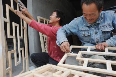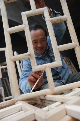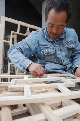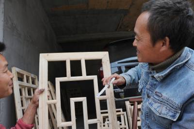 9月25日,建始县重拾老本行的木匠黄吉学在赶制古门窗。
