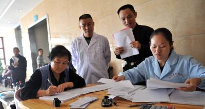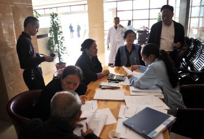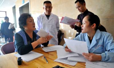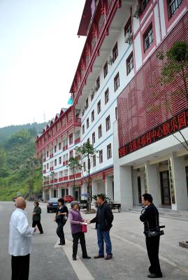 9月26日,人们在宣恩县颐乐园办理老人代养手续。 当日,宣恩县首家老人“自费代养”机构——宣恩县福利中心颐乐园正式对外开放。拥有近300个床位的该中心由政府投资建设,建筑面积11917平方米。入住该中心的老人可享受饮食起居、保健医疗等系列服务。(本报视界网 宋文 摄)