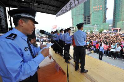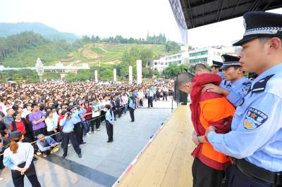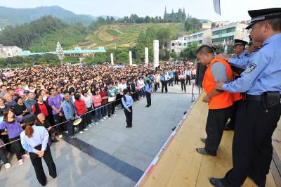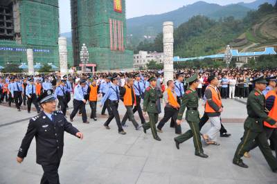 当日,保康县委政法委,县公安局、法院、检察院在在该县紫薇广场召开公开打击处理大会,对破坏经济建设、阻碍经济发展、干扰社会治安、危害人民群众生命财产安全的30名犯罪分子依法进行公开宣判,以切实维护政权安全、经济安全和公共安全,全力打造“平安保康”。(本报视界网 杨韬 摄)电话:13797593377