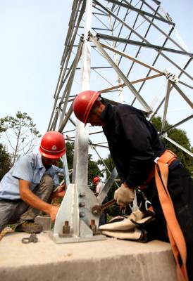 9月26日,在宣恩县珠山镇岩堡村3组,工人正在烈日下抢装铁塔。 自该县辖区内的恩来恩黔高速公路建设开工以来,县供电部门为了保证高路建设顺利,从不畏环境恶劣,全力做好为高路建设的供电工作。 据了解,该县在此次全力配合高路建设中,新修铁塔100余基,截至目前,100余基铁塔的安装工程已接近尾声,为县辖区内高速公路建设工作做了良好的铺垫。 本报视界网 戴俊 张小燕 摄 13636280558